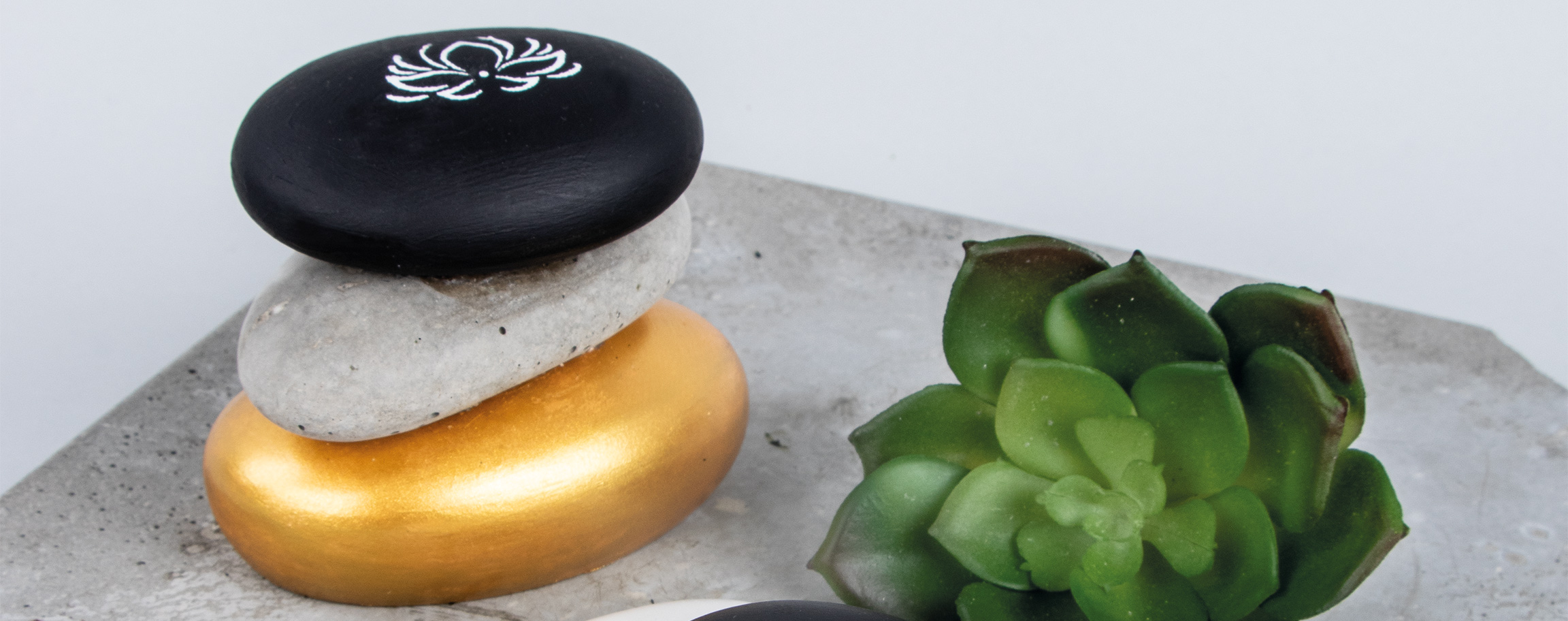 Instructions in 9 steps Decorative stones made of concrete and Raysin – nicely painted in a modern golden and elegant black & white look.