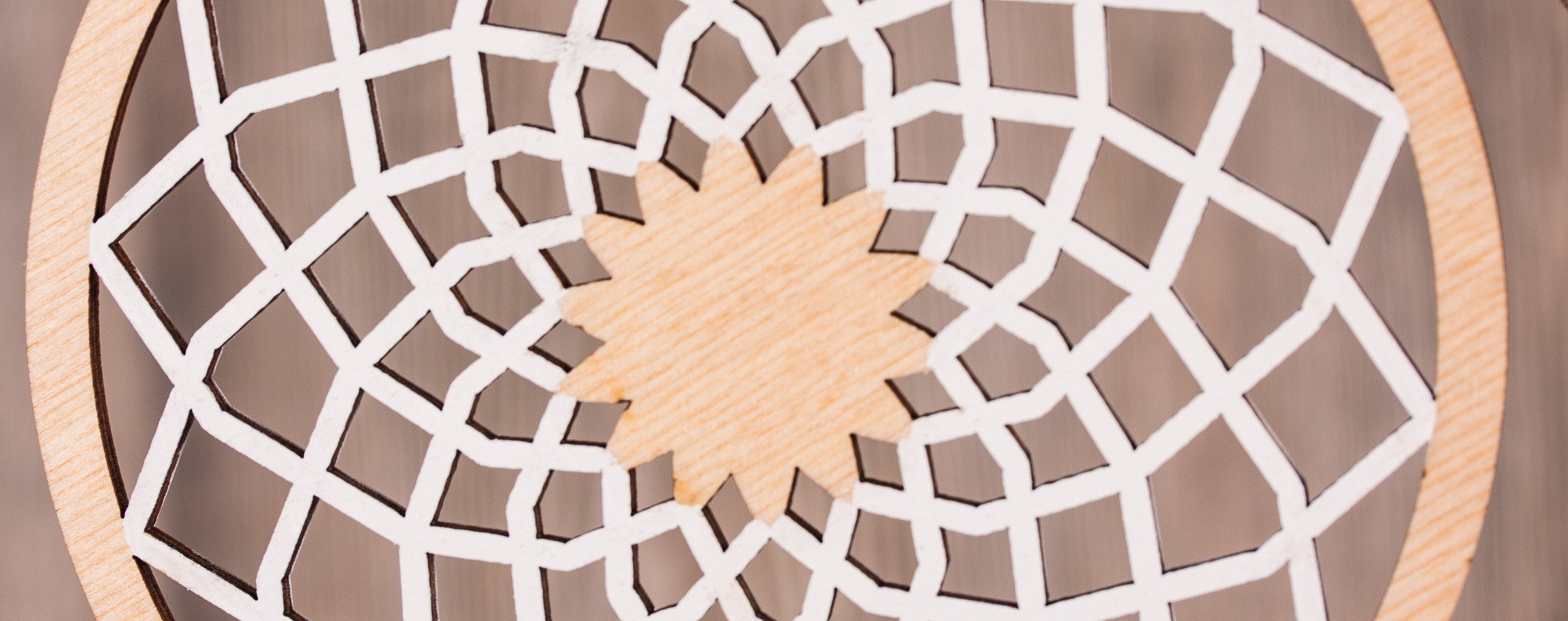 Then, paint the front & rear side of the laser-cut wood disc with the white All Purpose paint, but leave the edge and the motif in the middle unpainted.4 ![]()