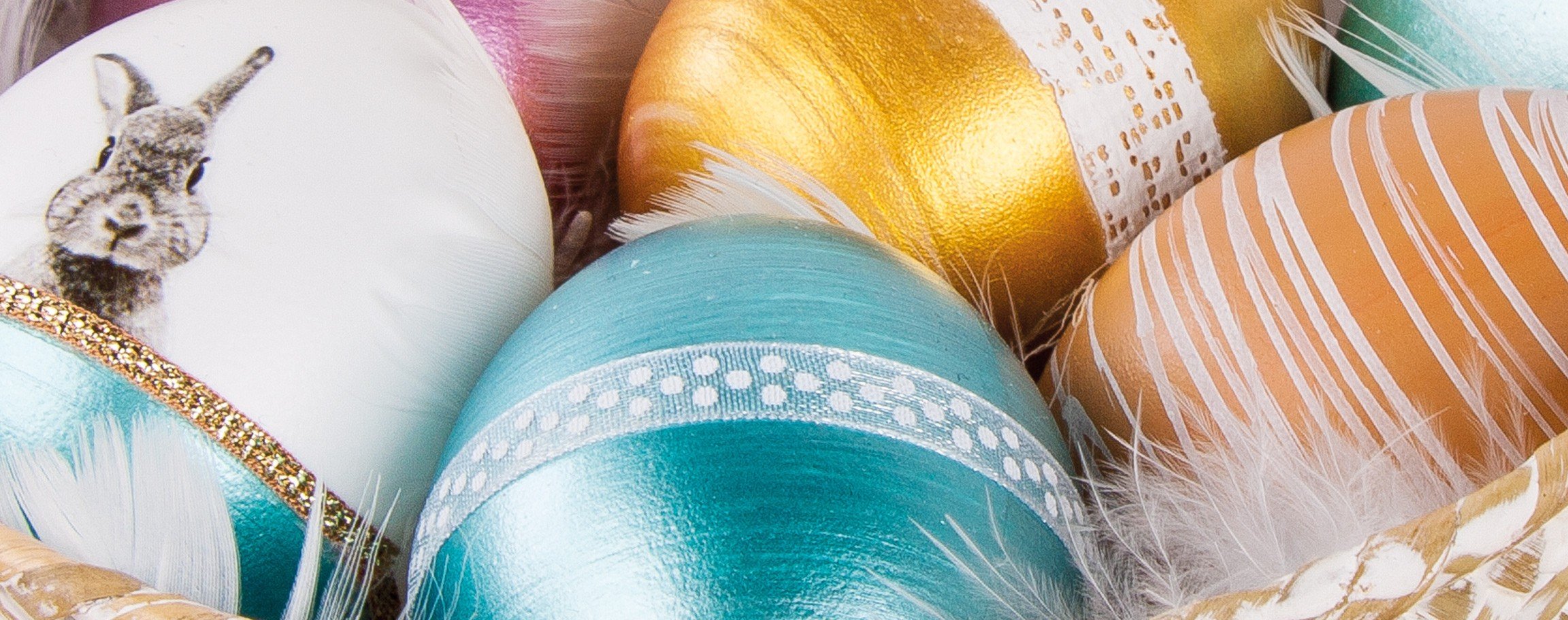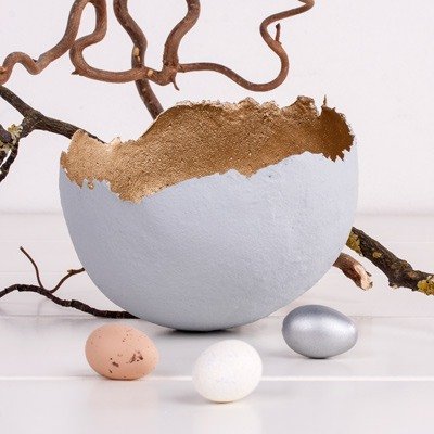 Instructions in 1 steps For the shimmering gold look, paint the plastic eggs with Extreme Sheen paint. Then decorate them with an organza ribbon. And this is how it works: