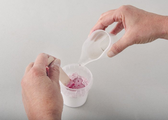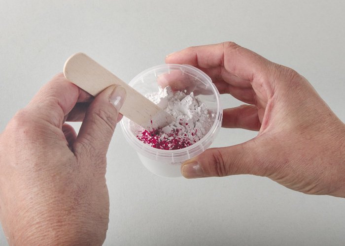 Mix the berry-coloured pigment with the Raysin casting powder in a small vessel. Blend it evenly. According to the desired colour intensity, you have to put more or less pigment.5 ![]()