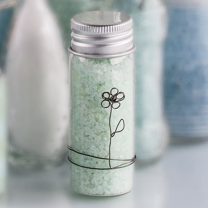 Instructions in 6 steps Dye the bath salts differently and fill the glass jars using a paper funnel. Decorate them to your liking - and voilà!