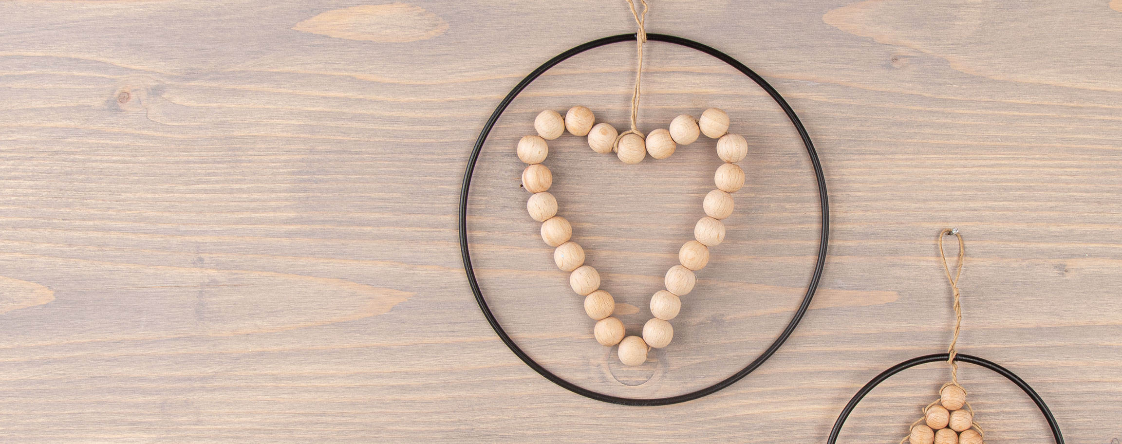 Instructions in 4 steps Shape the wooden balls strung on the heart-shaped paper-covered wire so that they fit exactly inside the metal ring. And this is how it works: