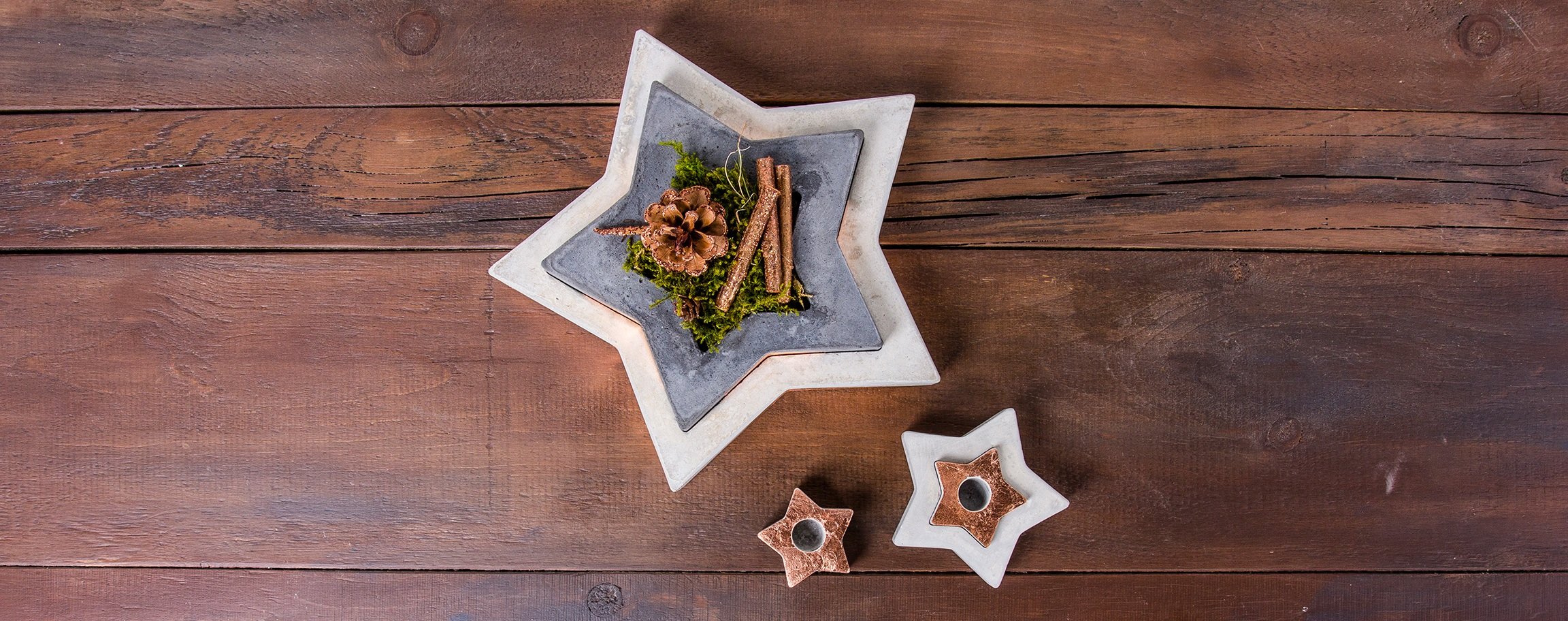 Instructions in 10 steps Pine cones, moss and cinnamon sticks: the ideal decoration for the large star-shaped bowl made of concrete.
