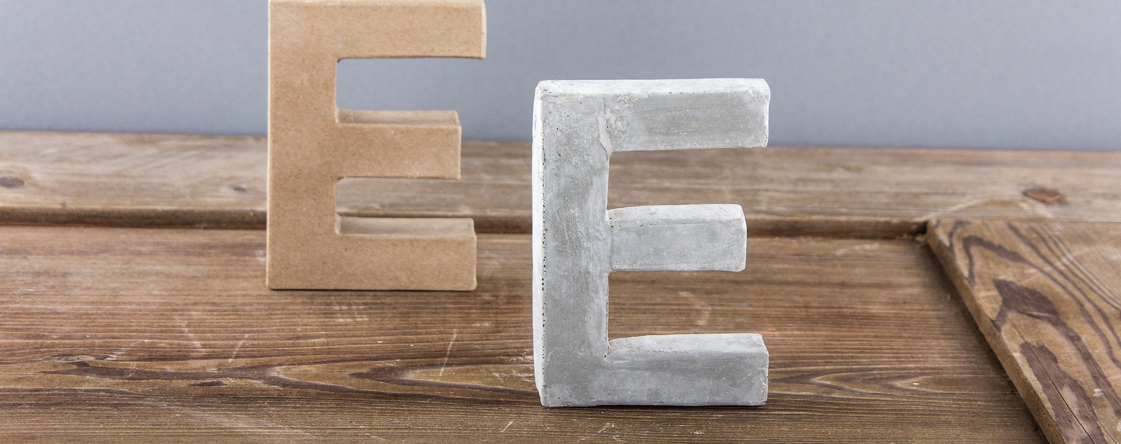 Instructions in 8 steps To make it easier to get the concrete out of the mould later, tape the papier-mâché letter "E" beforehand and coat it with cooking oil.