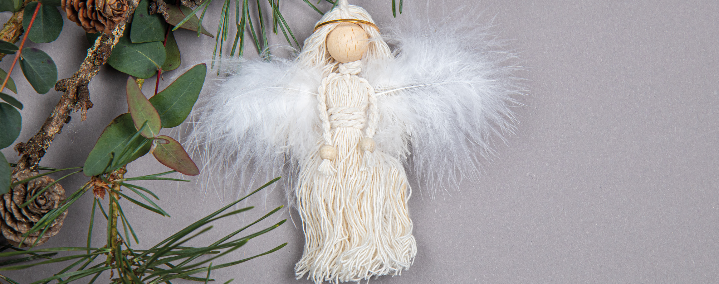 Instructions in 9 steps From white yarn in combination with the wooden balls and feathers arise heavenly angel figurines. Tie them up, adorn them and hang them up. And this is how it works: