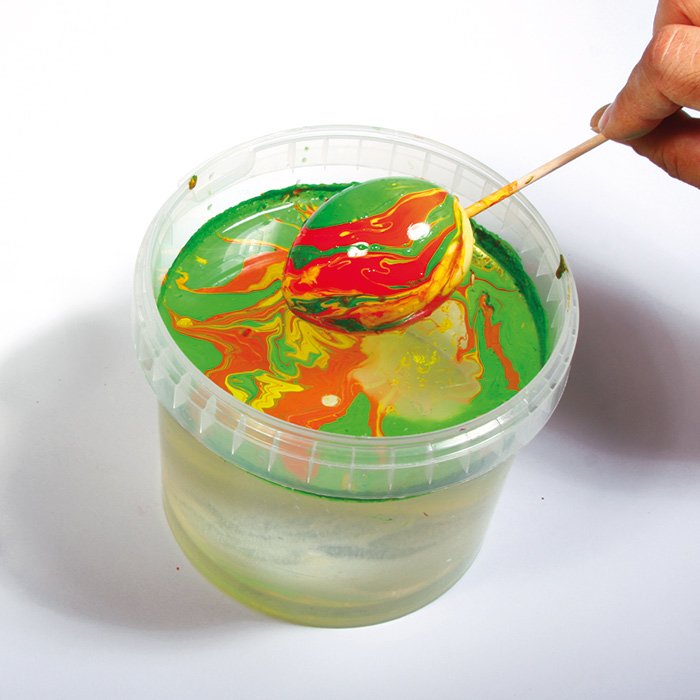 Pull a wooden spit through the marble paint immediately after dropping in the colour.3 ![]()