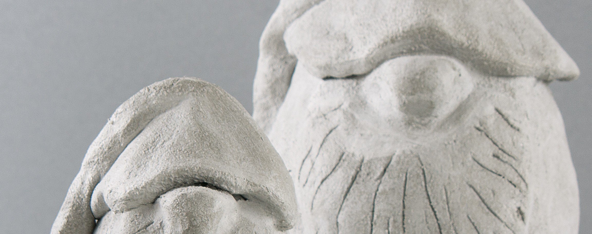 Instructions in 6 steps Shape the hat, beard and feet with your hands. Shape the body of the gnome with kneading-cement.