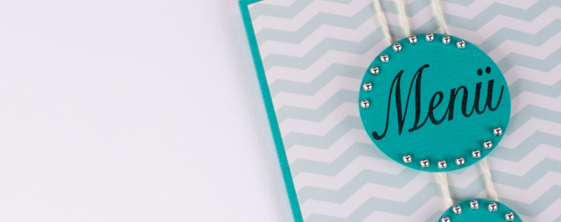 Instructions in 4 steps This menu card is quick and easy to make: all you need are a puncher and an ink pad. And this is how it works: