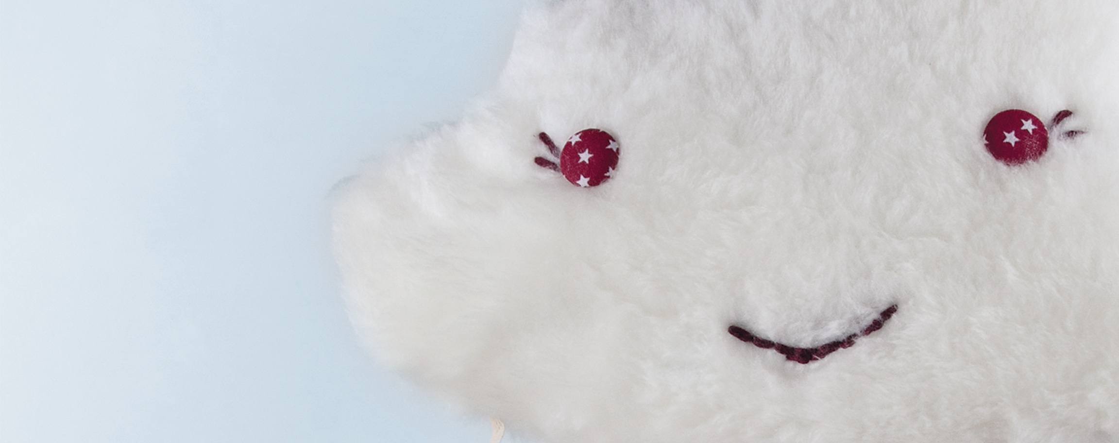 According to the cutting-pattern, sew on the buttons as eyes, with the cotton yarn the eyelashes and with a lock stitch create the mouth. Lay the cloud-cutting left sides together.4 ![]()
