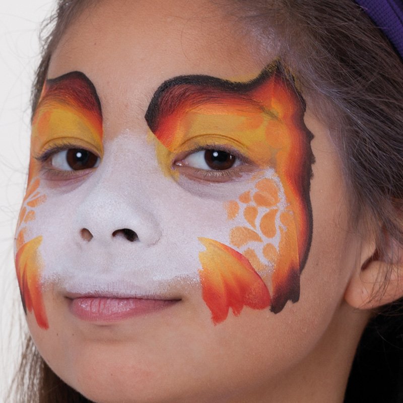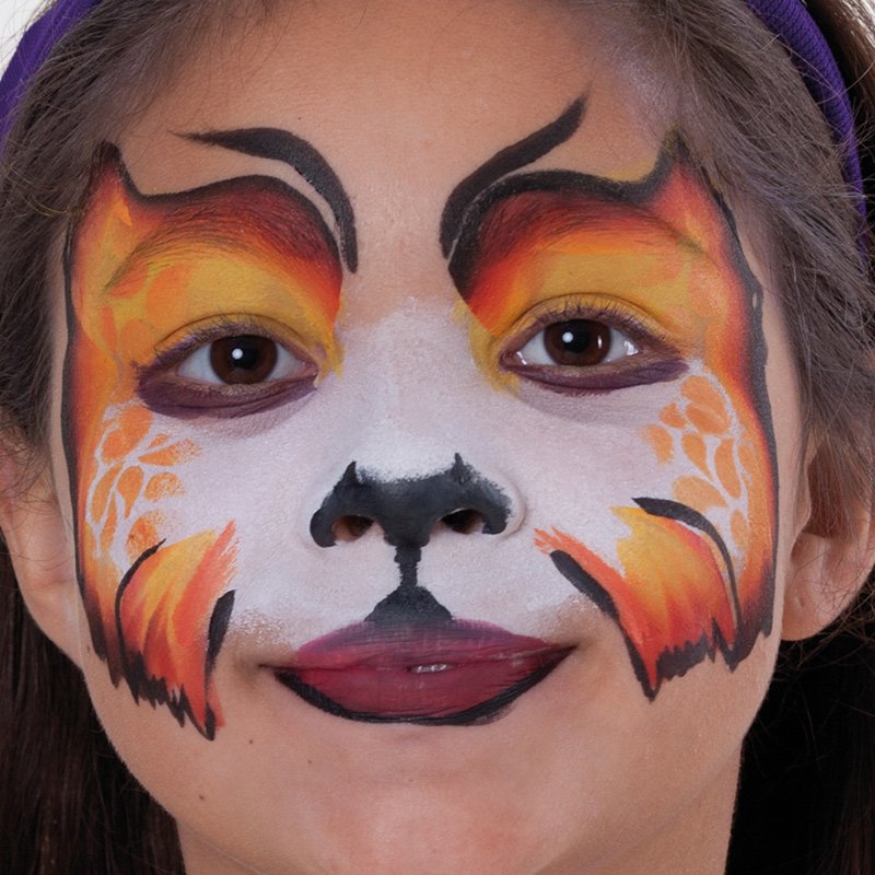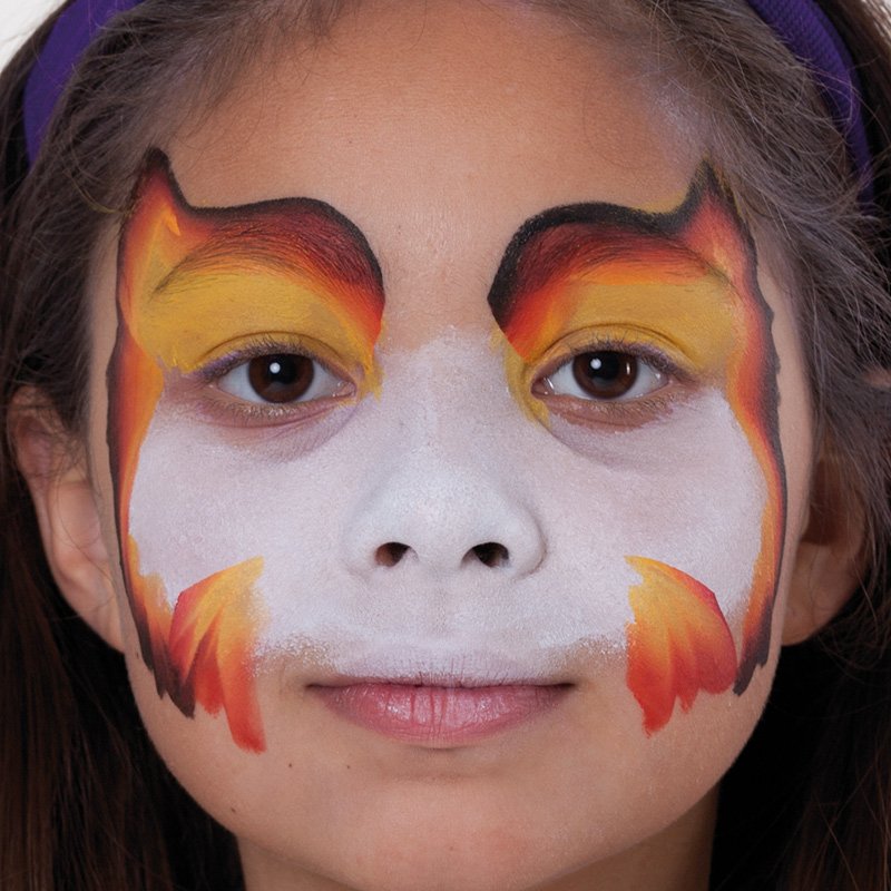 With a round brush, take up the red and yellow paint from the “Paint me” paint (moving the brush forwards and backwards). Paint the whiskers on both sides of the face.5 ![]()