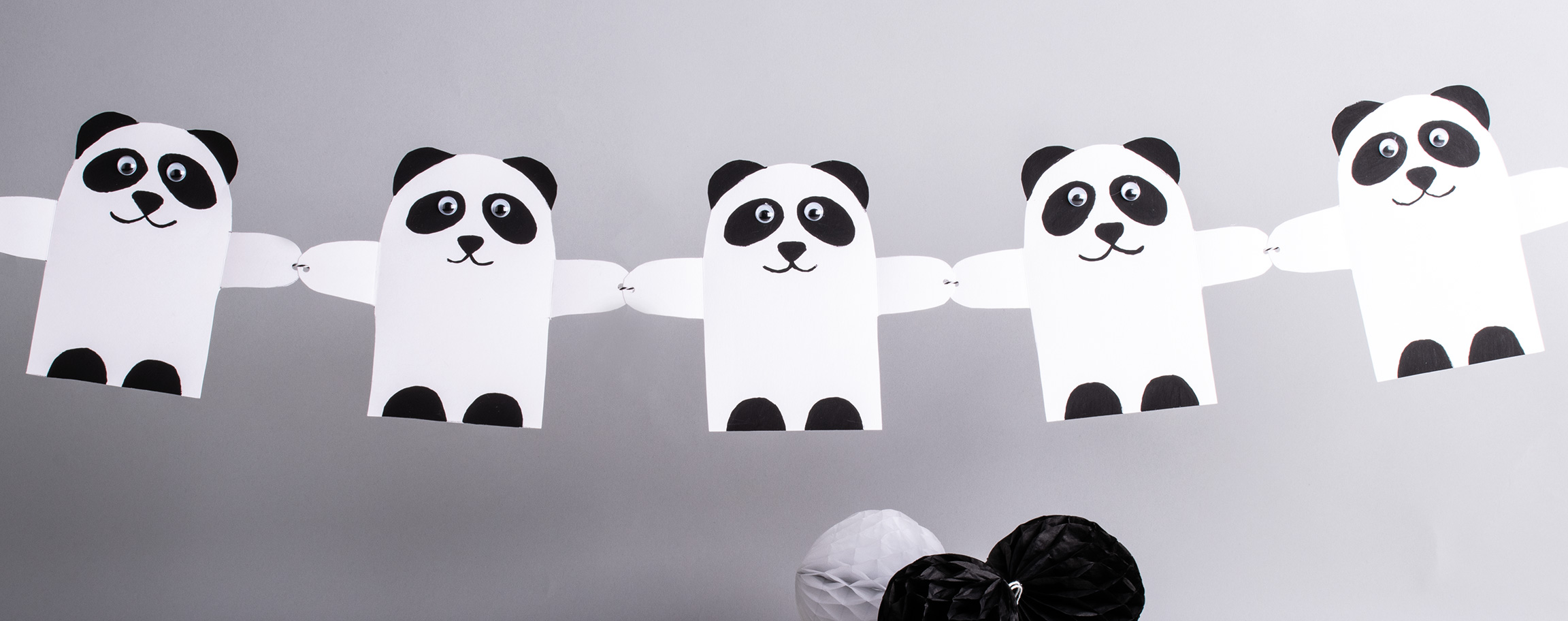 Instructions in 5 steps All the rage decoration for the children's room: you can make our panda-garland with just a few accessories.