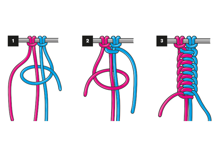Pull the cords through, from top to bottom, at one side of the clasp (the front section) and then pull them through the resulting loop.4 ![]()