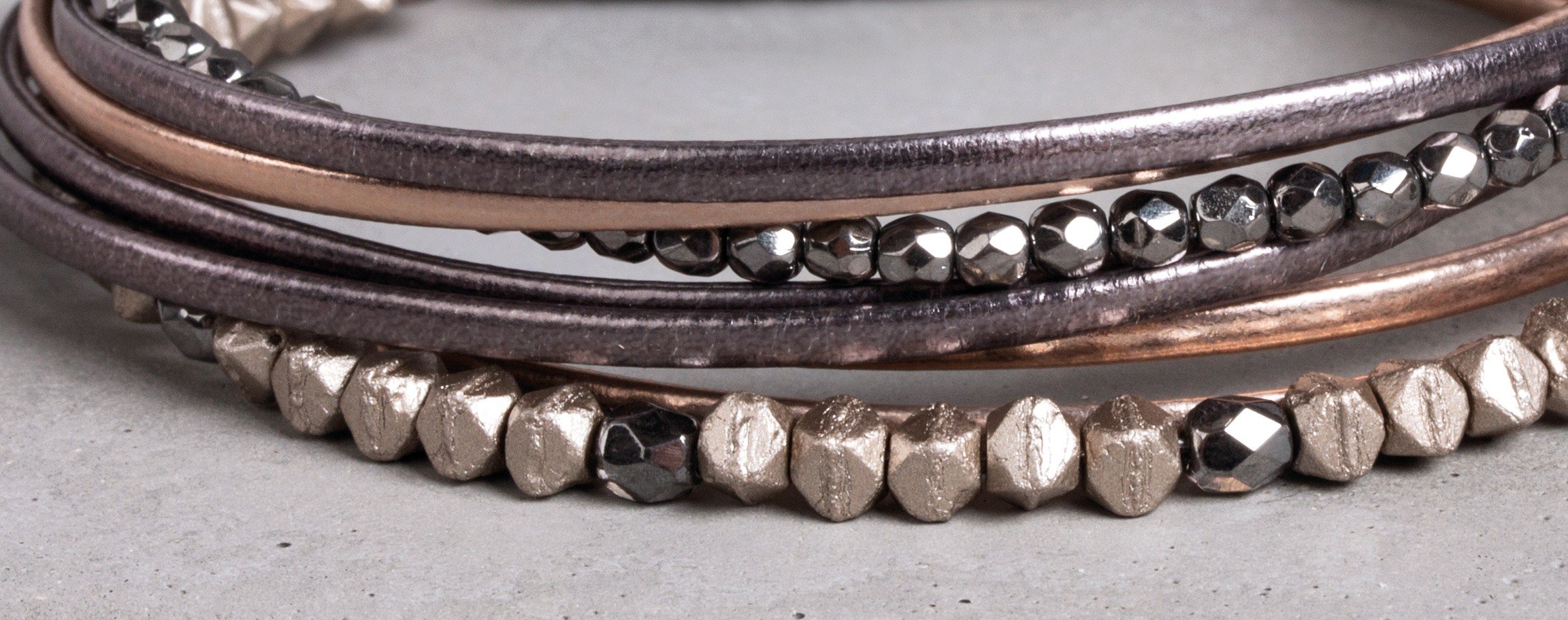 Instructions in 6 steps Leatherette straps, Rocailles beads and glass fire-polished beads once strung on a jewellery wire enrich you with this great bracelet. Its magnetic clasp is particularly practical as it is very easy to open and close. And this is how it works:
