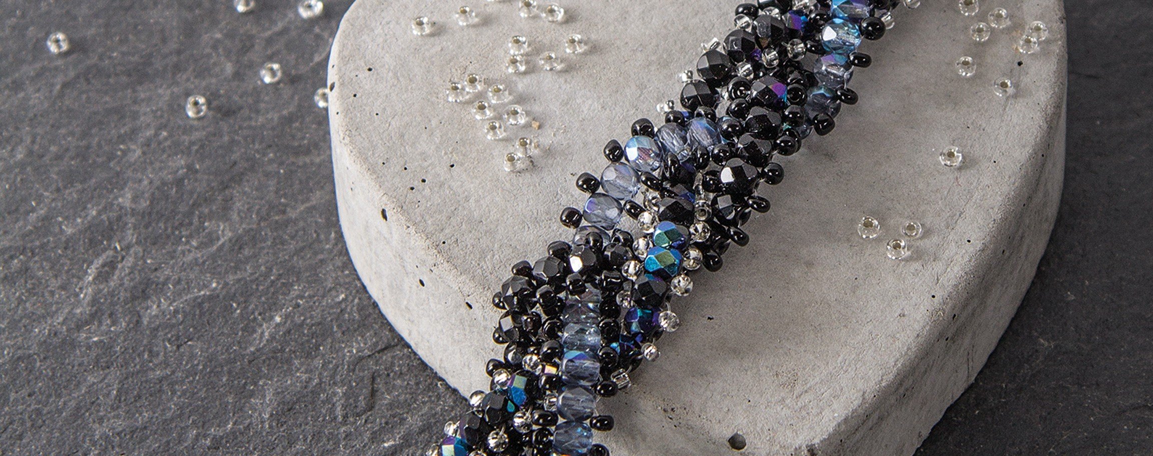Instructions in 9 steps  Thread on the glass fire-polished beads and Rocailles beads according to the instructions to create this elegant bracelet with intertwined look.    And this is how it works: