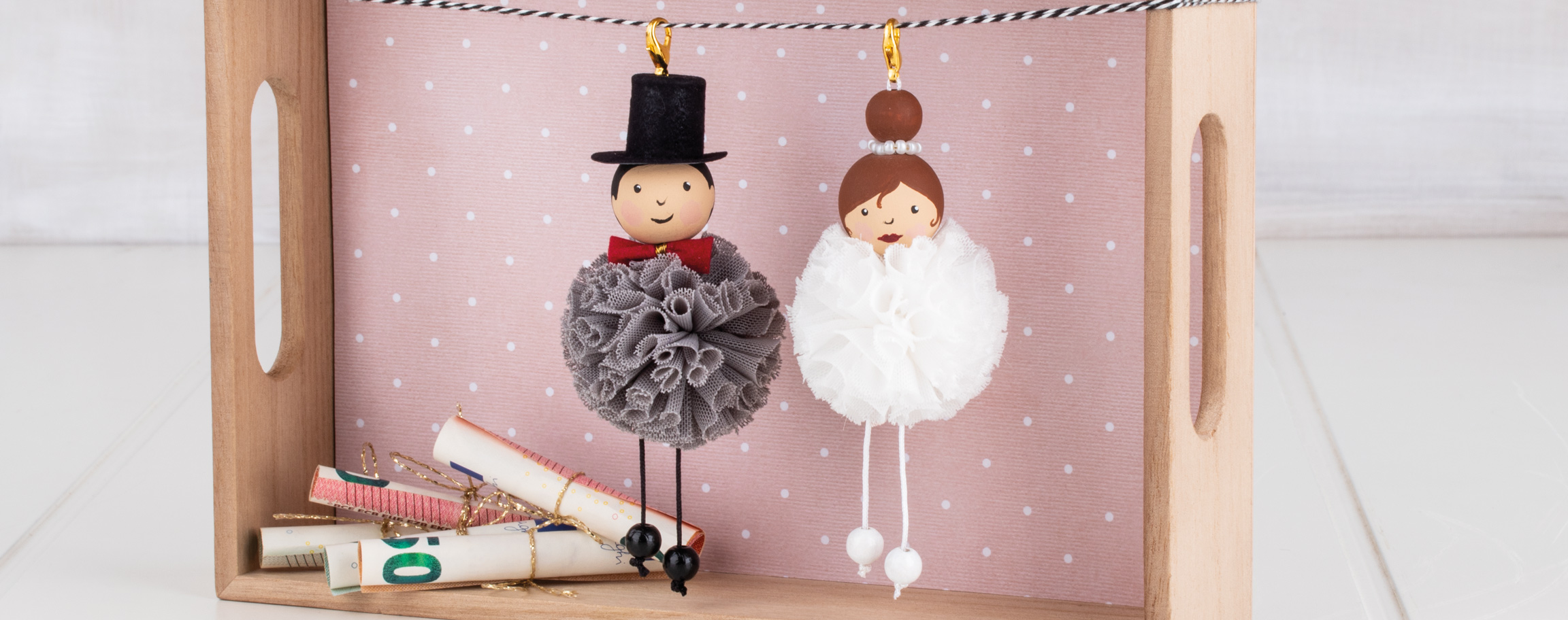 Instructions in 9 steps Black topper and red bow tie unmistakably define the Pomponella pendant as a groom.