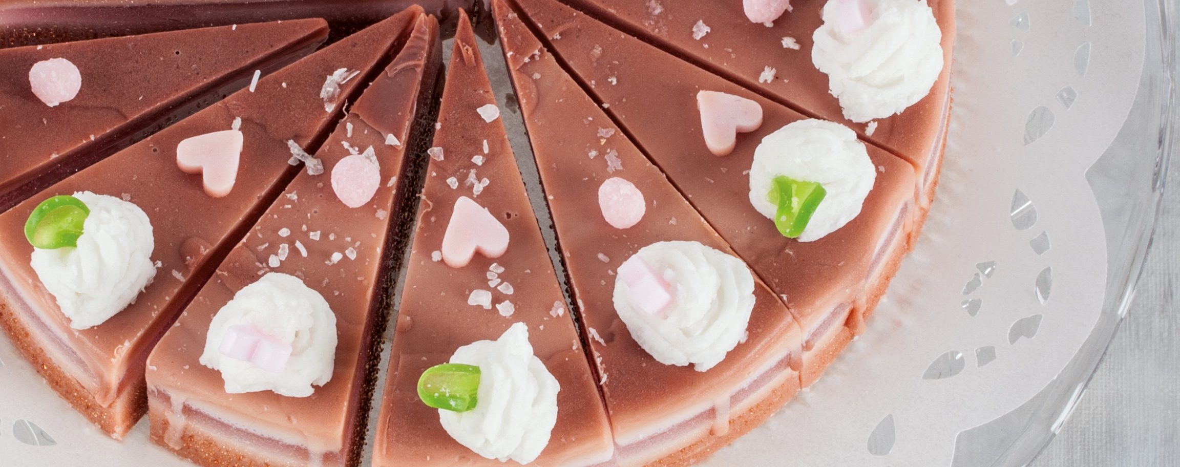 Once the glaze has dried well out, you can cut the cake into pieces and decorate it with cream rosette (see instructions) and the cutout hearts (see instructions).9 ![]()