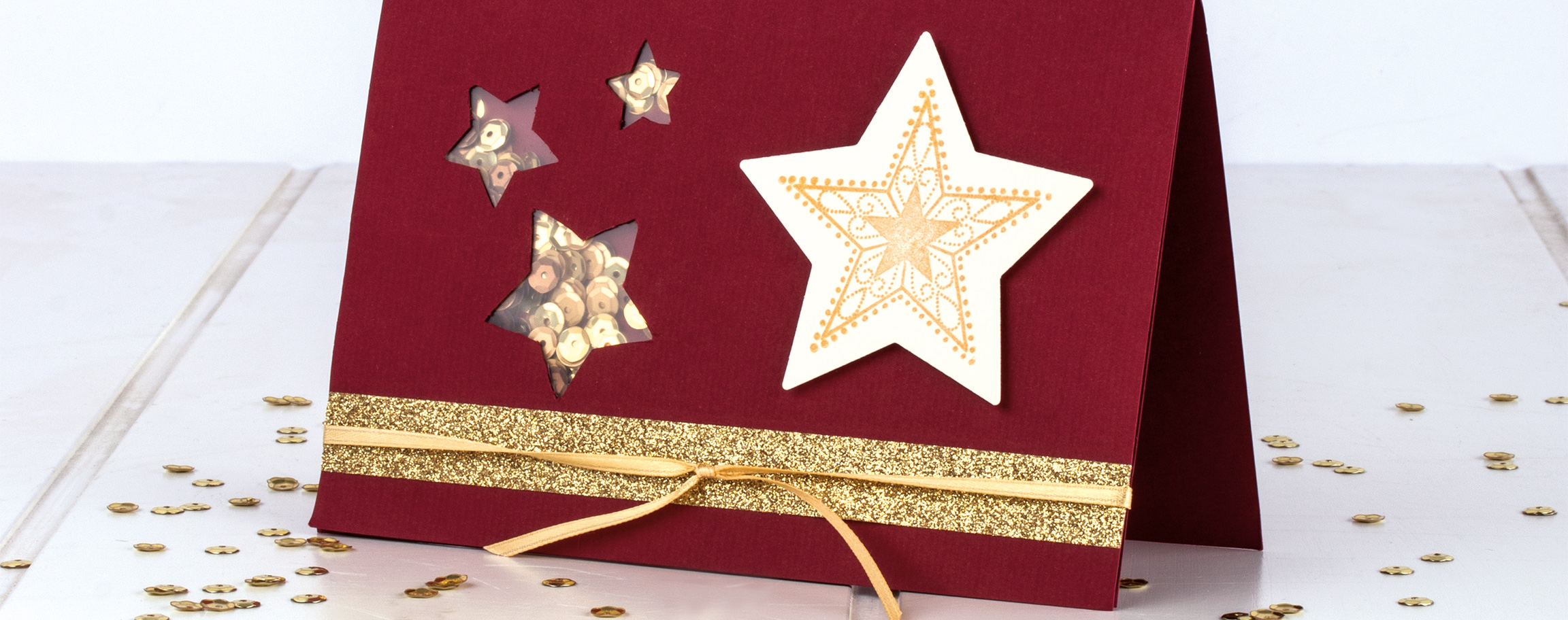 Instructions in 12 steps Glitter in motion - the sequins behind the stars turn this Christmas card into one-of-a-kind card.