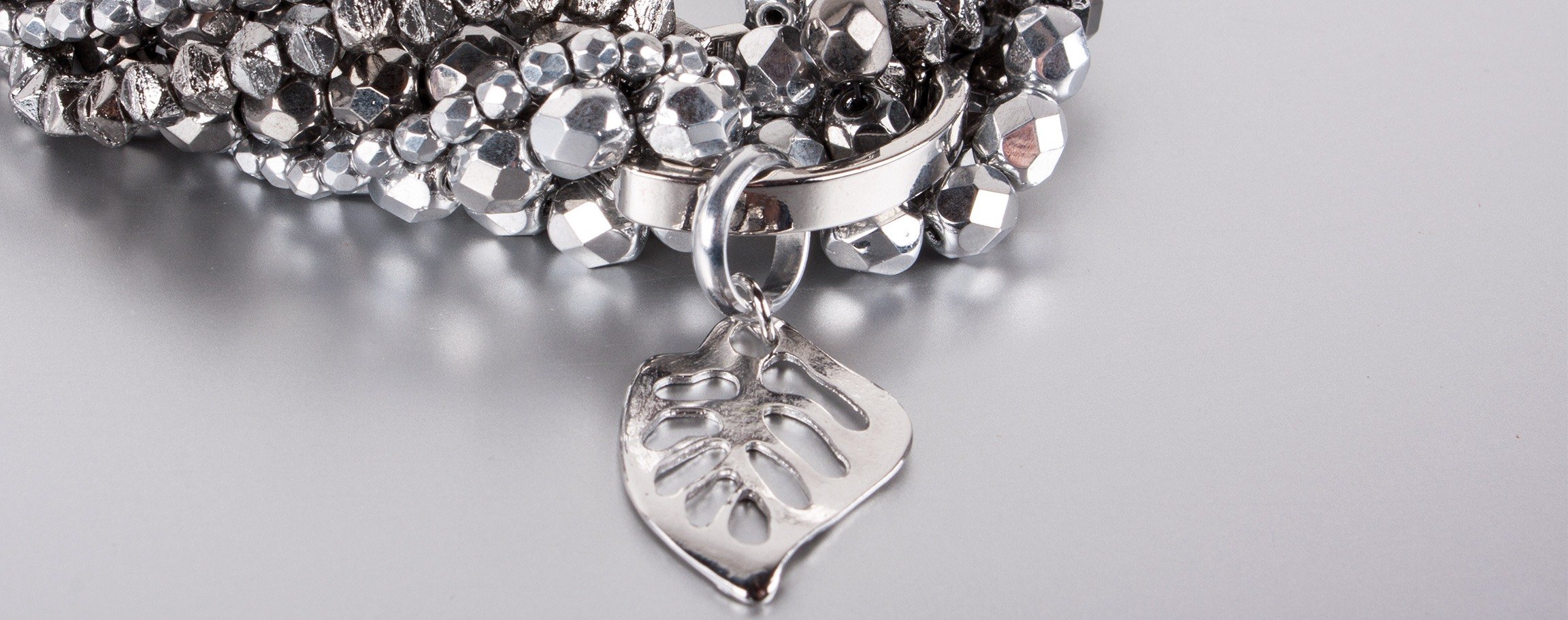 Instructions in 5 steps String the glass fire-polished beads in shimmering silver & grey shades onto the yarn. The bracelet is twisted at its ends before attaching the clasp. And this is how it works: