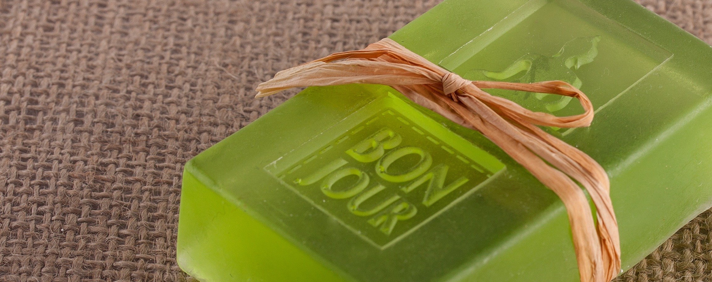 Instructions in 8 steps Even after the green colouring, your soap bar remains see-through. The basis is namely the transparent soap bar.
