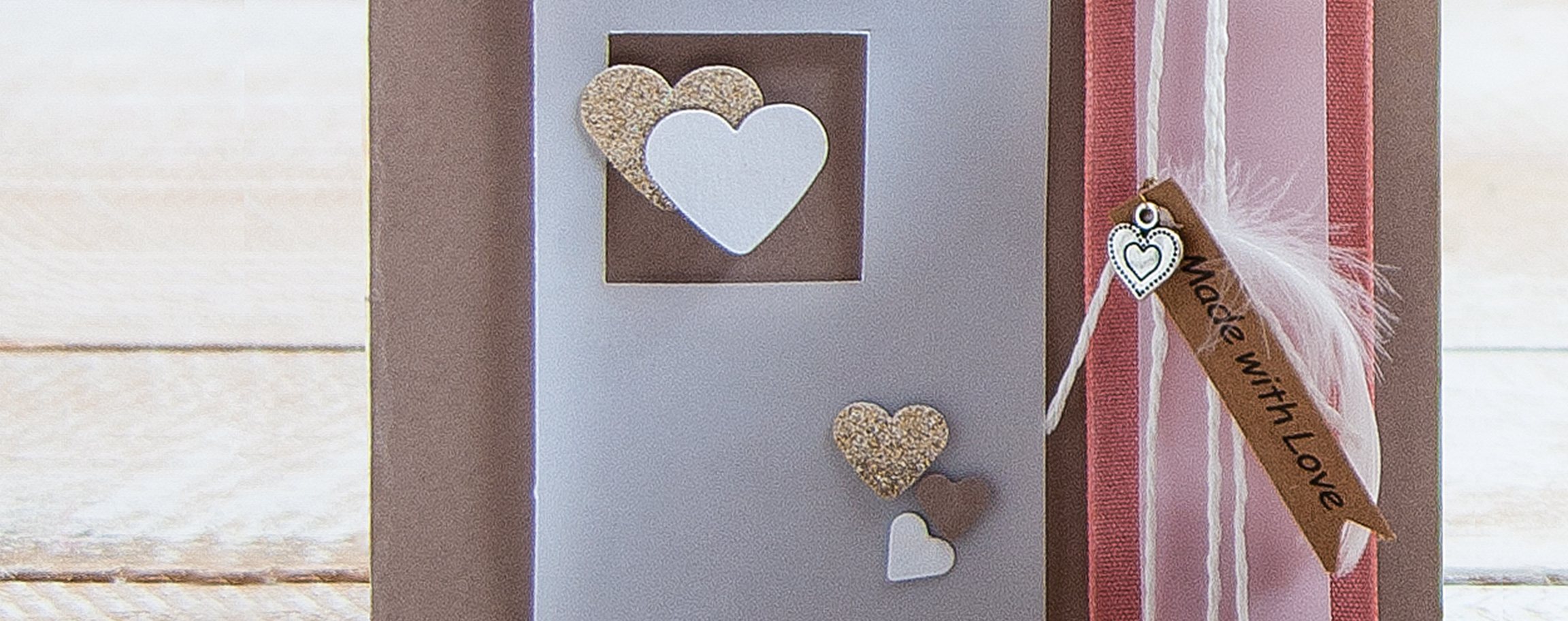 Instructions in 4 steps Attach various ribbons and cords to the square-shaped card. Add your personal touch with the "Made with love" tags. And this is how it works: