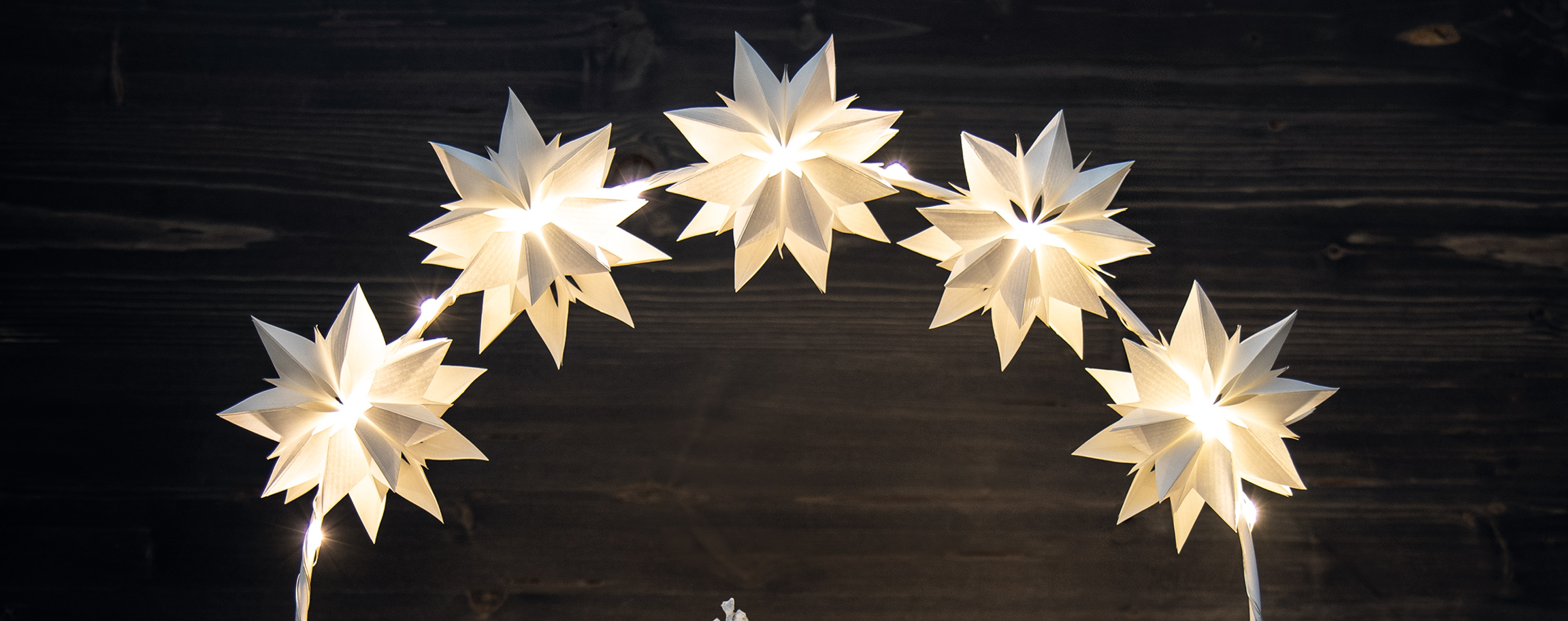 Instructions in 7 steps Cut great decorative stars out of paper bags. Once attached to the metal ring with a LED string lights wound around it, they create an illusion of glowing night sky.