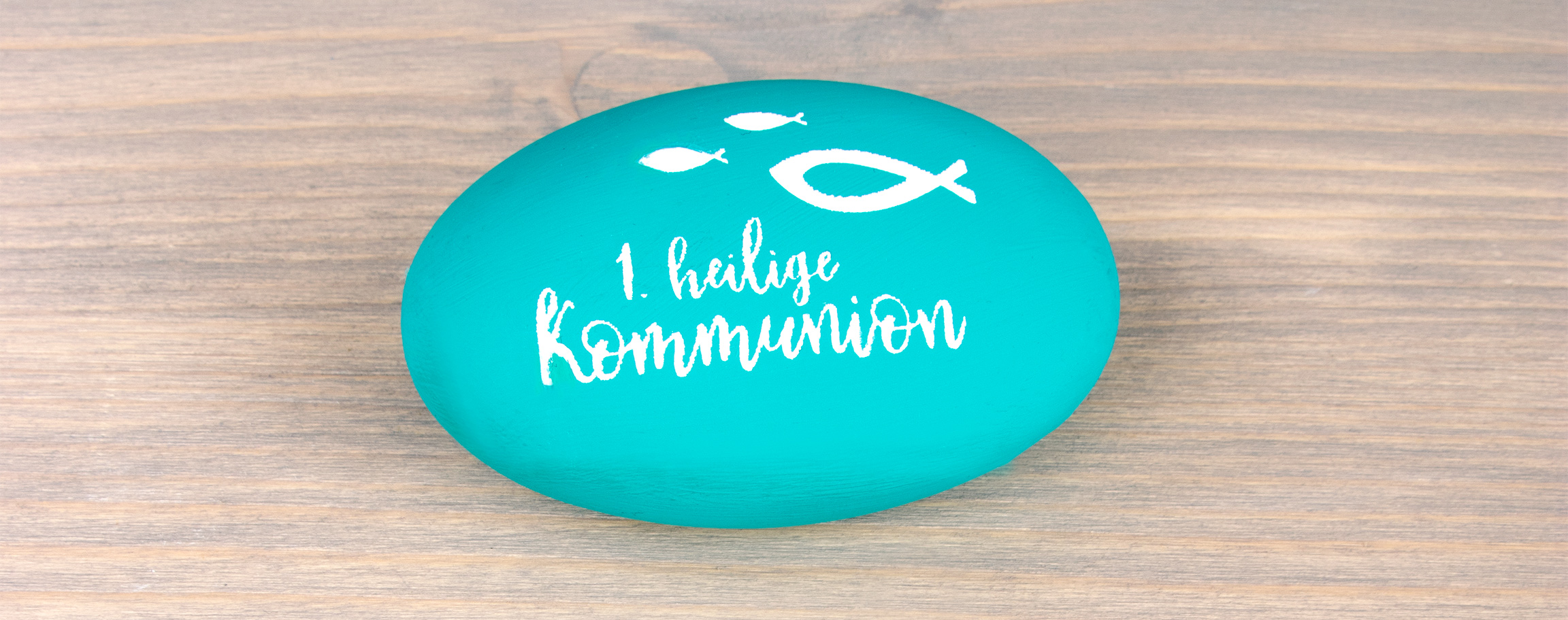 Cut out the motif “Heilige Kommunion” from the screen printing stencil and peel off the backing paper from the stencil. Place the motif in the middle of the stone. Stretch the stencil slightly over the surface of the stone and rub it firmly with your fingers. The applied motif should not form any creases, should lie fully on the surface and should be snug fitting to the surface shape of the stone.4 ![]()