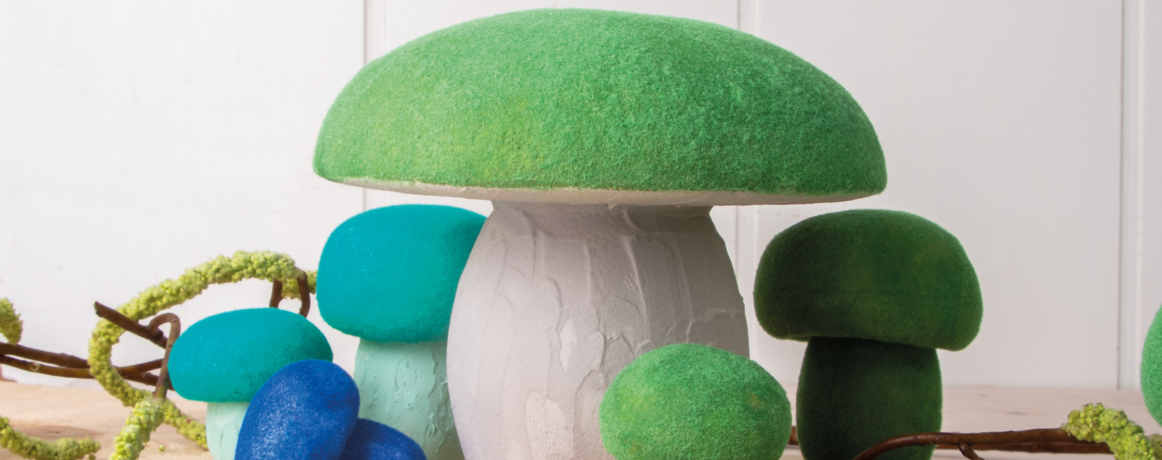 Instructions in 14 steps The viscose flocking powder creates a peculiar velvet on the styrofoam mushrooms and enhances the colour when decorating. And this is how it works: