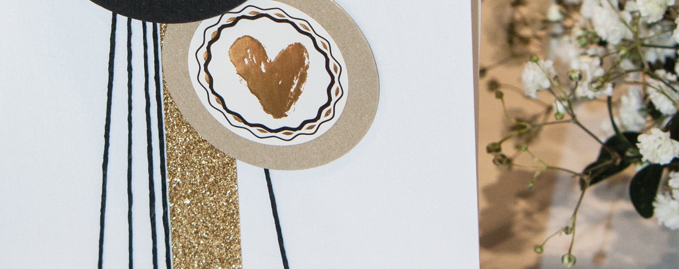 Instructions in 6 steps Gold & black menu for your festive day: made easy with the "Menu" stamp. Glitter tape and hemp cord enhance the whole picture. And this is how it works: