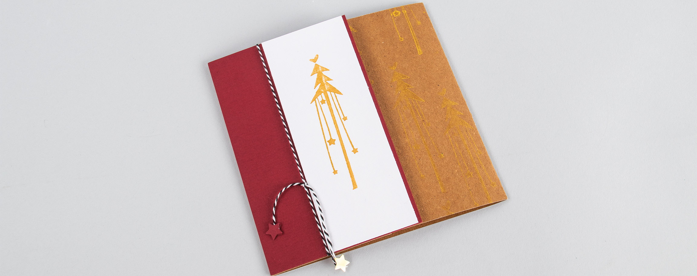 Instructions in 12 steps This Christmas card leaves no one unmoved. This very special card is made of different paper sheets and by means of a Christmas stamp and extravagant bicolor yarn. And this is how it works:
