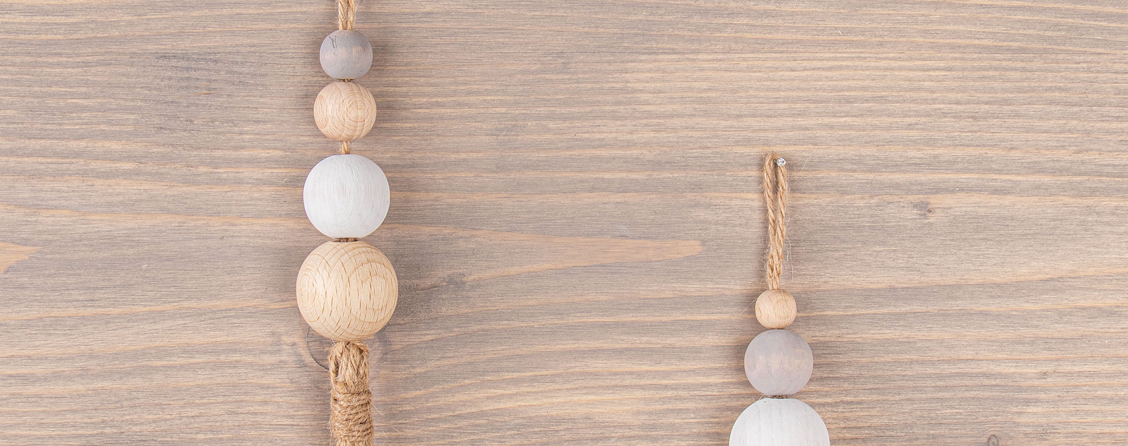 Attach the jute cord (35 cm) to the finished jute tassel for hanging up and thread the raw-wood balls according to size onto both jute strands.4 ![]()