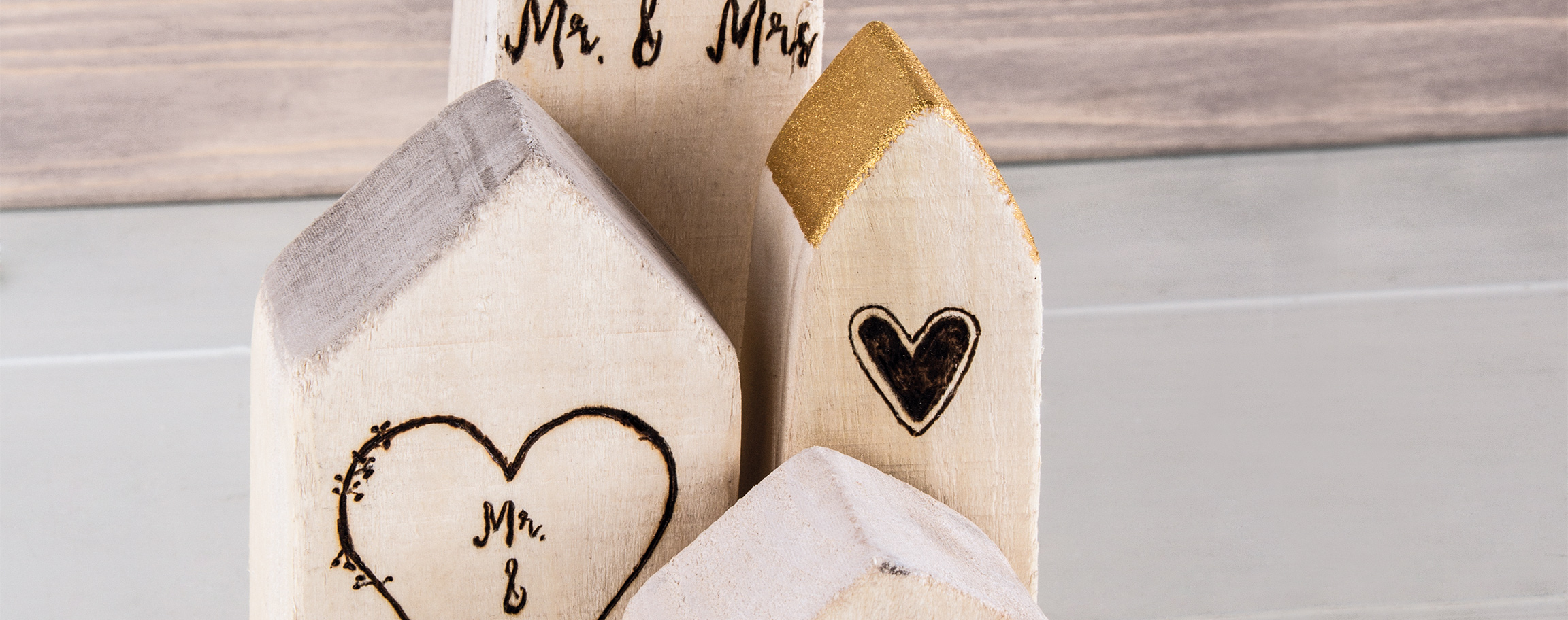 Instructions in 4 steps For a particularly natural look. Our wooden houses can be processed and decorated with the woodburning pen.