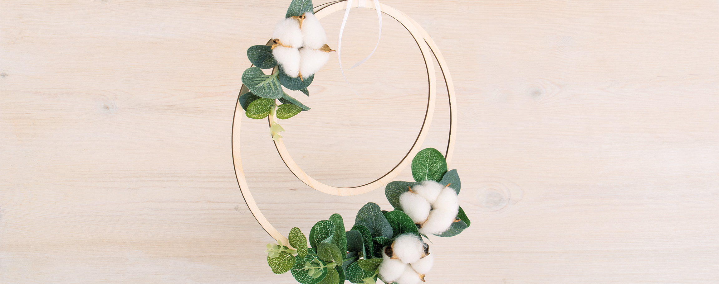 Instructions in 5 steps Create a sophisticated wooden ring to hang in just 15 minutes with an eucalyptus twig and cotton flower for a naturally subtle look. And this is how it works: