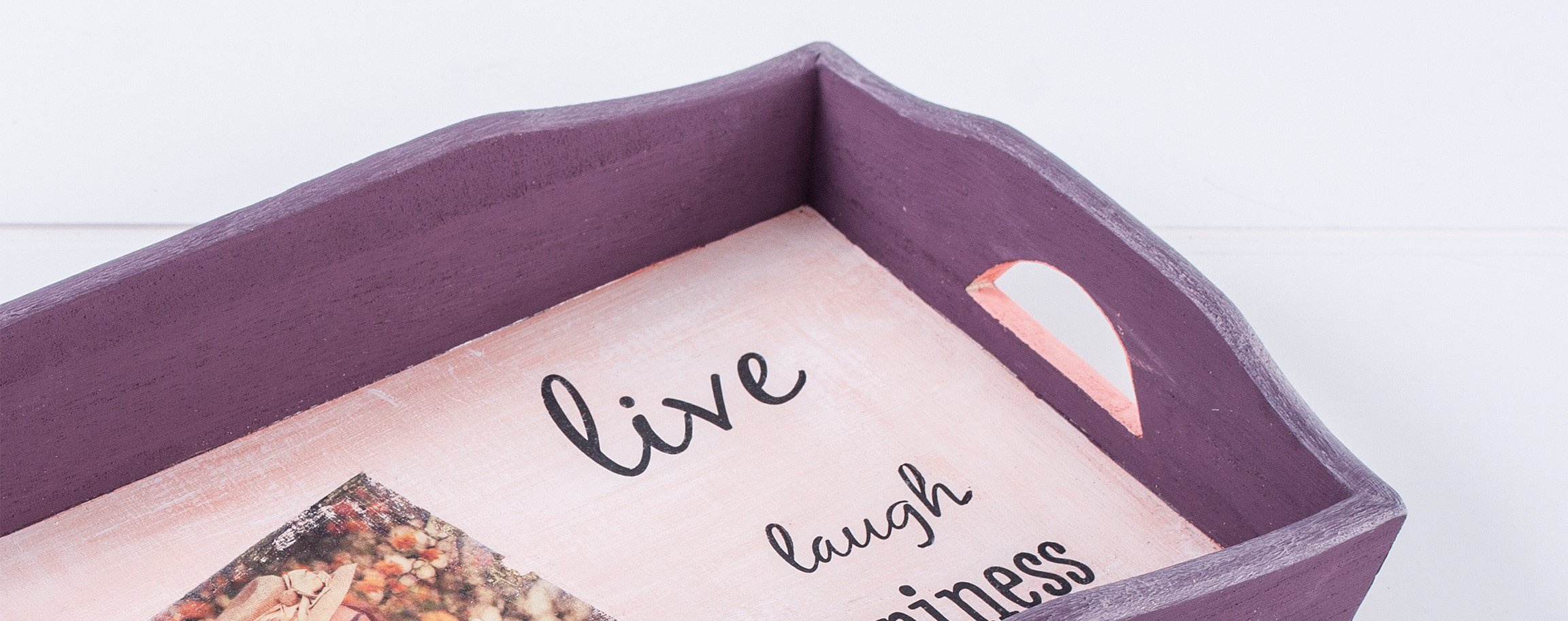 Instructions in 7 steps Your favourite picture as a decorative motif on your wooden tray. By using a transfer medium, you can easily affix printed pictures to the wooden background. And this is how it works: