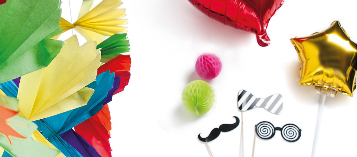 La gamme Célébration de Rayher t’offre tous les produits imaginables liés au thème «Les accessoires de fête» - aussi polyvalents que ta fête! Assortis en couleur, pour tout âge et toute occasion! Qu’il s’agisse d’une décoration tape-à-l’oeil de la pièce choisie ou d’une table joliment dressée – absolument chaque accessoire transforme l’endroit de ta fête en une oasis de bien-être. Allons fêter ça! Notre devoir est de t’aider avec la décoration, le tien est de faire uniquement la fête! Maintenant, il ne te reste plus qu’à choisir tes couleurs préférées en fonction du thème de ta fête et de prendre les pompons, les guirlandes et les ballons aluminium correspondants. Par ailleurs, tu peux pimenter ta fête avec des ballons en nid d’abeille, des rosettes, des bougies, des confettis et des babioles. Outre les accessoires de fête, il y a toutes sortes d’emballages cadeaux dans notre gamme tels que des boîtes-cadeaux de haute qualité et des papiers cadeaux branchés.